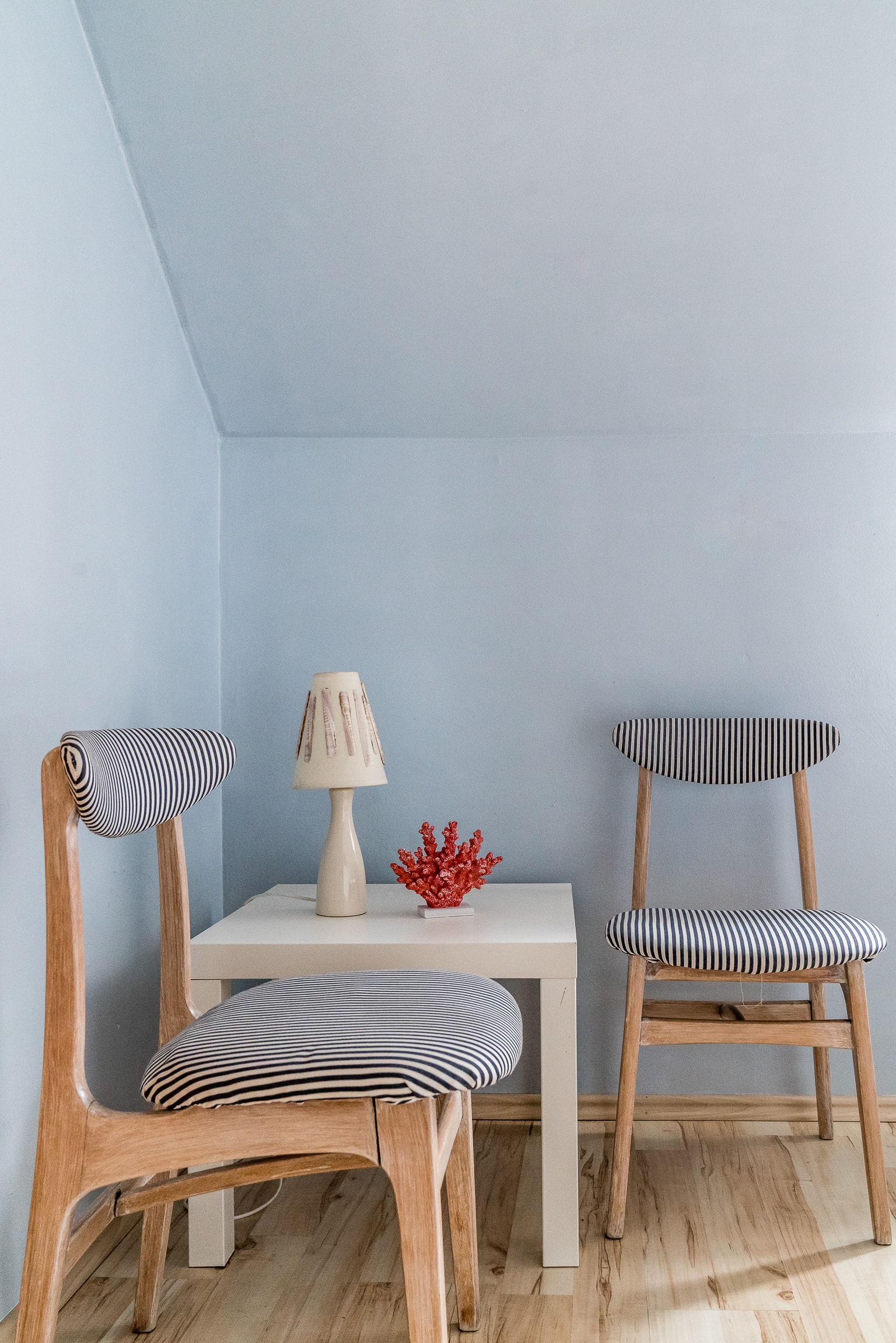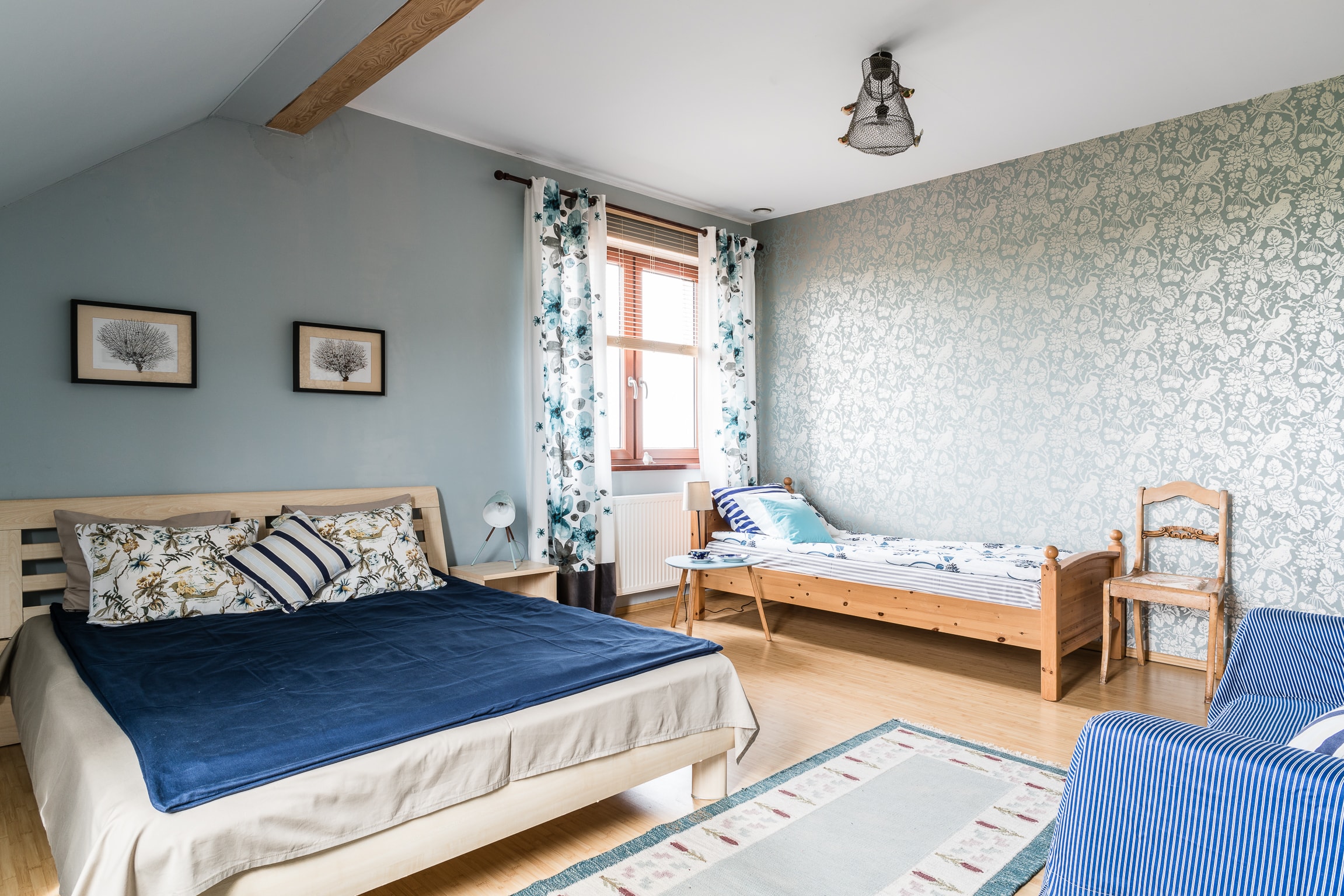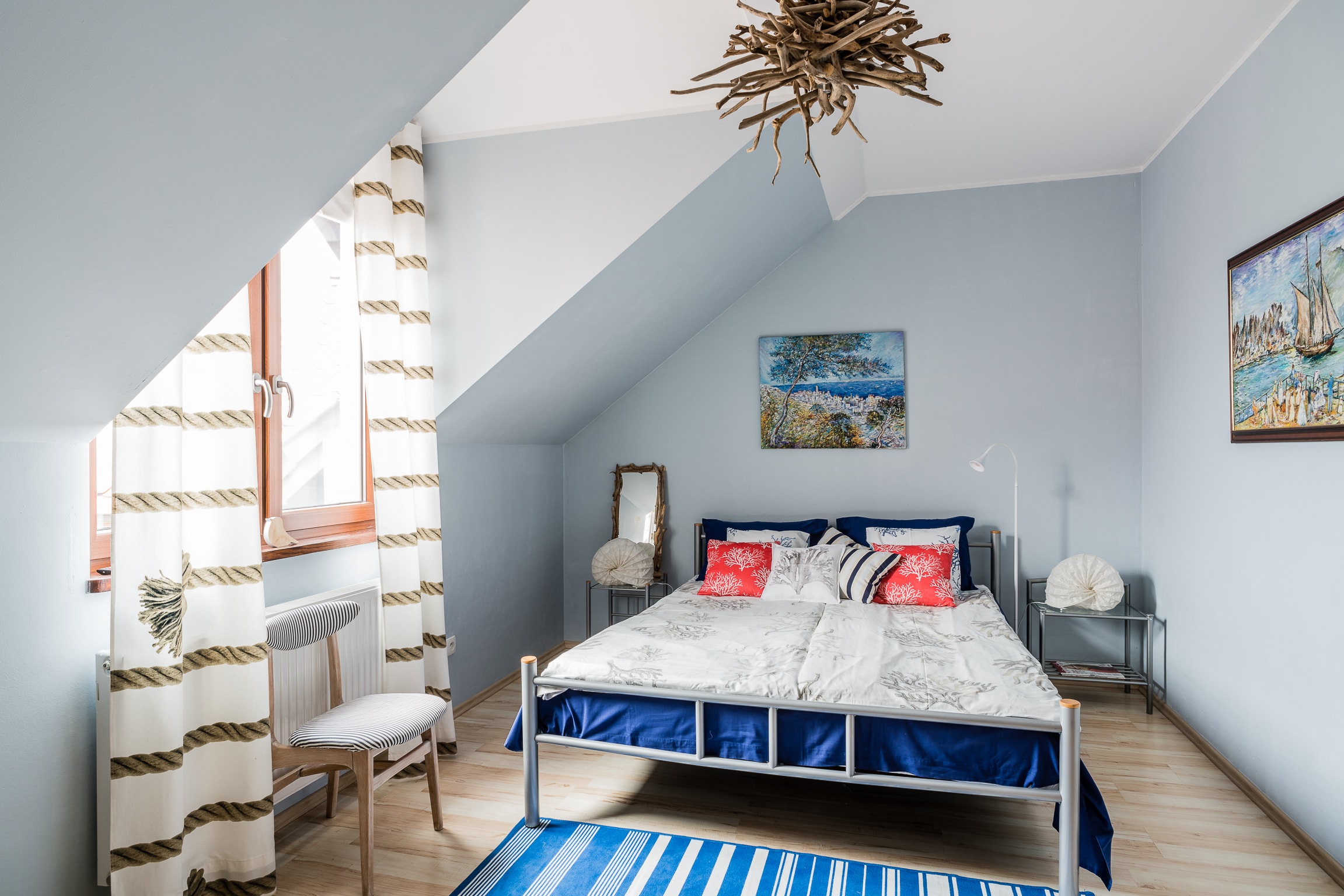 Jeden z najpopularniejszych pokoi dwuosobowych z pięknym, nostalgicznym widokiem na morze. Pokój urządzony jest w stylu skandynawskim. Dodatki w stylu marynarskim nadają mu wesoły klimat przygody i wypoczynku. W pokoju jest łóżko małżeńskie z wygodnymi, podwójnymi materacami o średniej twardości, stolik, krzesła oraz szafa ubraniowa. Wygodna przestronna łazienka zaprasza na kąpiel pod prysznicem.