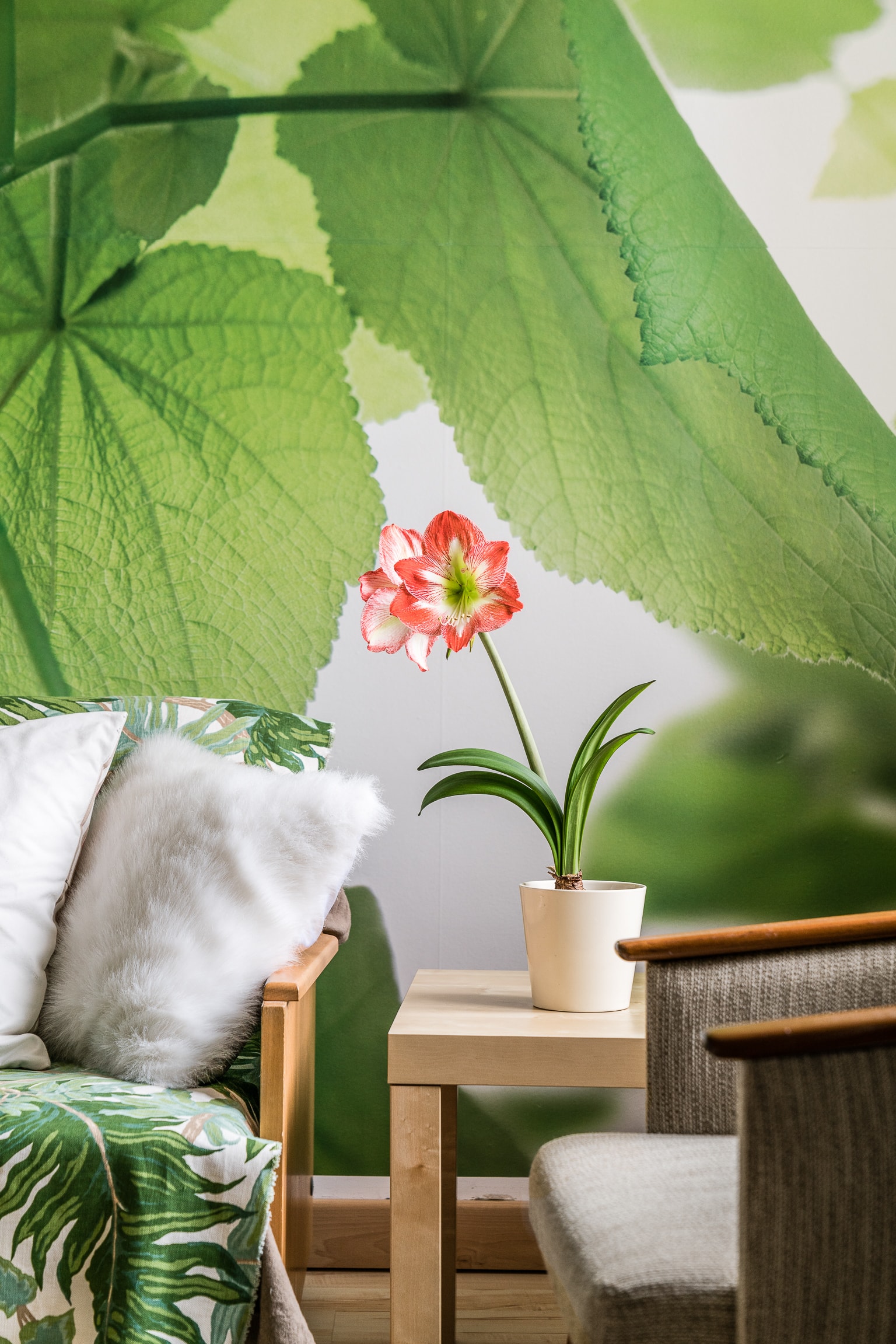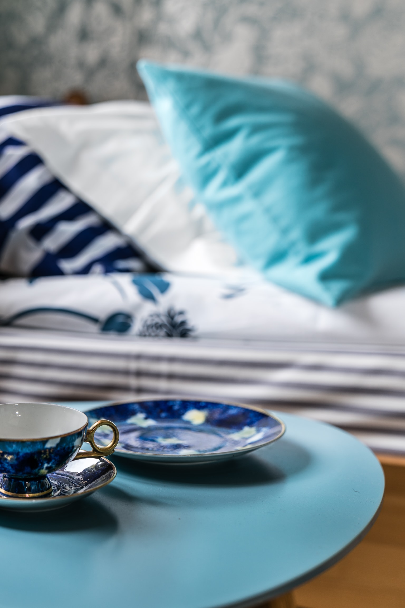 Duży wygodny pokój dla rodziny. Urządzony w stylu oszczędnej elegancji z elementami florystycznymi. Na uwagę zasługuje ciekawa łazienka z motywem liści bananowca co wprowadza nastój azjatyckiego SPA . W pokoju łóżko małżeńskie, łóżko pojedyncze oraz rozkładana kanapa. Okna pokoju wychodzą na północ z widokiem na morze.